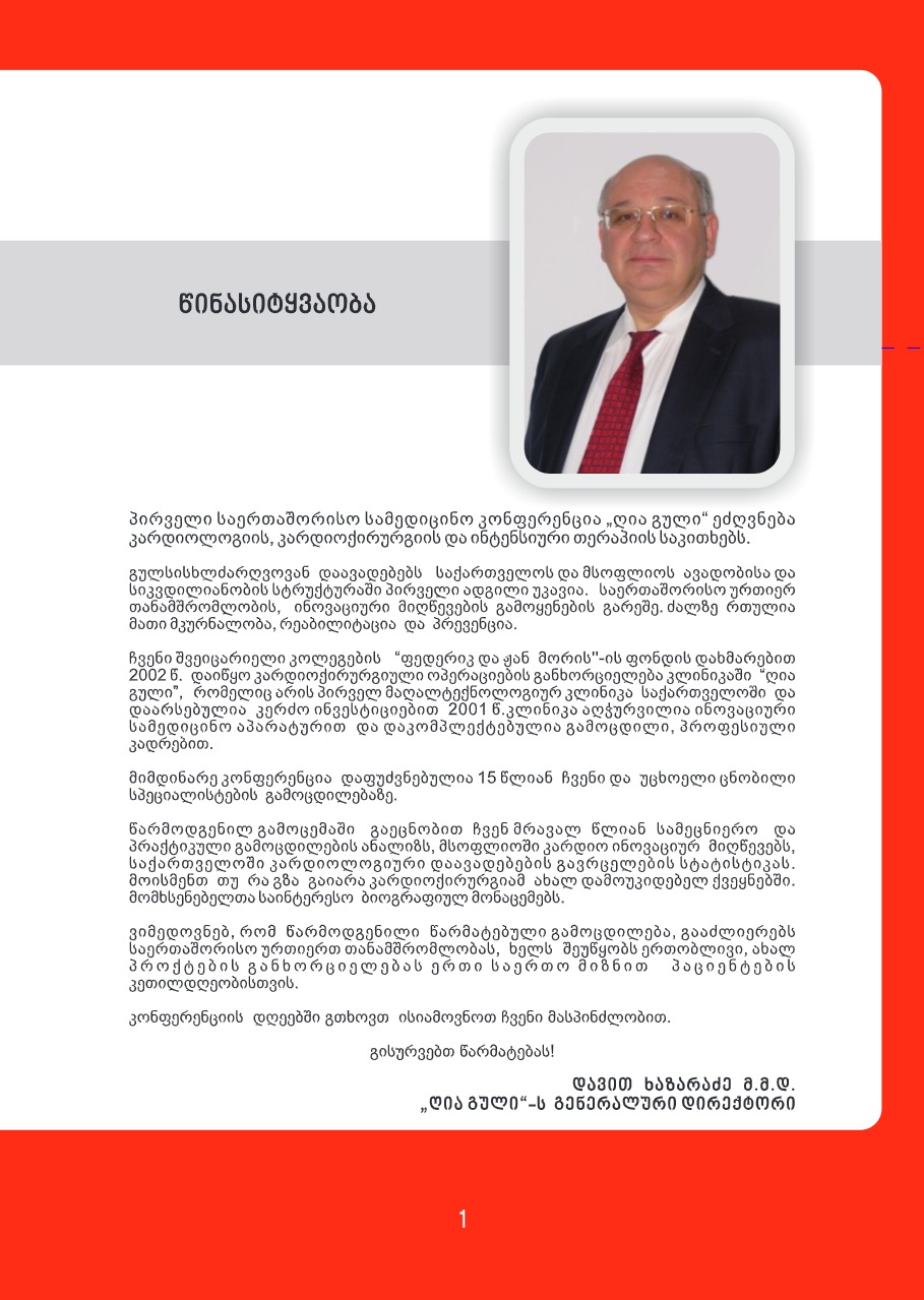 კონფერენციაზე მოხსენებით გამოვიდა, ,,ღია გულის’’ მოზრდილთა კარდიოქირურგიული დეპარტამენტის ხელმძღვანელი კახაბერ ლაცუზბაია.