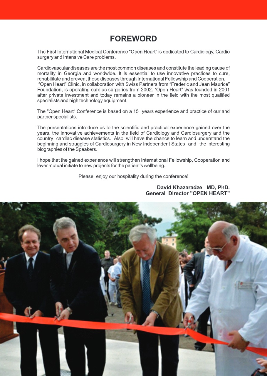 2015 წლის 6 ივნისს, კარდიოქირურგიული კლინიკა ,, ღია გულის’’ ეგიდით, პირველი საერთაშორიოს სამედიცინო კონფერენცია ,, ღია გული’’ ჩატარდა.