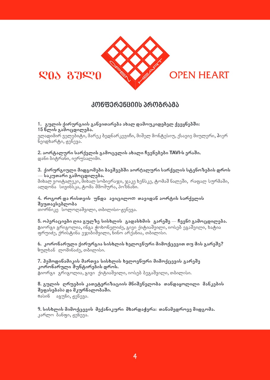 26 ოქტომბერს, კარდიოქირურგიული კლინიკა ,, ღია გულის’’ და საქართველოს გულის ფონდის ეგიდით , გულის მსოფლიო დღისადმი მიძღვნილი სამედიცინო კონფერენცია